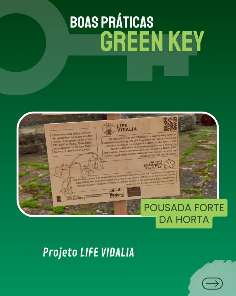 A parceria estabelecida entre a Pousada Forte da Horta, o projeto LIFE VIDALIA e o Jardim Botânico do Faial teve como principal objetivo promover a sensibilização e educação ambiental, tanto junto dos clientes como dos colaboradores, destacando a importância da preservação das espécies nativas e endémicas, bem como das boas práticas ambientais.