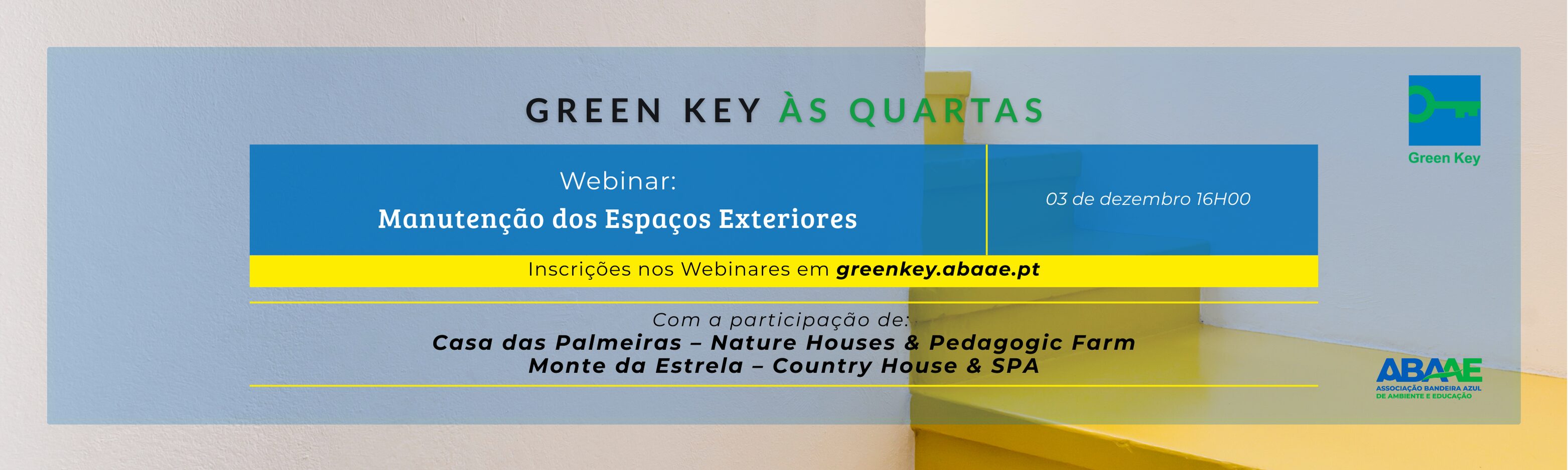 No dia 3 de dezembro, decorreu mais um webinar do ciclo Green Key às Quartas, dedicado à Manutenção dos Espaços Exteriores, com a participação de Mariana Santos, da Casa das Palmeiras, e Pedro Farrancha, do Monte da Estrela. Ambos apresentaram as práticas exemplares que implementam na gestão sustentável dos seus espaços exteriores, alinhadas com os critérios Green Key de redução de pesticidas químicos e promoção da biodiversidade local.